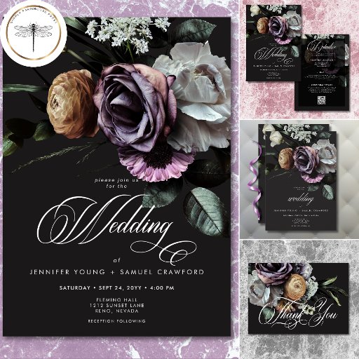 Elegant Moody Twilight Mled Floral Wedding Einladung
