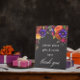 Mit unserem bezaubernden Brautparty-Geschenkschild können Sie die opulente Schönheit einer Herbsternte bewundern. Ein dramatischer, aber weicher schwarzer Hintergrund bietet die perfekte Leinwand für einen atemberaubend realistischen Bouquet. Stellen Sie sich eine lebhafte Farbexplosion vor, mit Rose in orangefarbener und dunkler Magenta, kleinen magentafarbenen Blume und lila Veilchen und neben Pfirsichmüttern und anderen lebhaften Blumen. Das üppige, dunkelgrüne Blattwerk rundet das Ganze ab und verleiht dem Ganzen eine Touch natürlicher Eleganz. Dieses faszinierende Design ist perfekt für jede Jahreszeit und spiegelt die leidenschaftliche Intensität Ihrer Liebe wider. Ihre Hochzeitsdetails werden in elegantem Drehbuch präsentiert, sodass sie sich vor dem dramatischen Hintergrund wunderbar abheben. Dieses bezaubernde Design schafft eine unvergessliche Einladung, Ihren besonderen Tag zu feiern. Erstellt von der einfachen Farmhouse Press.