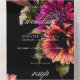 MIT QR CODE ODER MIT ODER OHNE ABENDESCHOICES VERFÜGBAR. Genießen Sie die opulente Schönheit eines Sommeruntergangs oder die Farbenpracht einer Herbsternte mit unserer faszinierenden Einladung zur Hochzeit. Ein dramatischer, aber weicher schwarzer Hintergrund bietet die perfekte Leinwand für einen atemberaubend realistischen Bouquet. Stellen Sie sich eine lebhafte Farbexplosion vor, mit Maden in Magenta und lila, mit sanften rosa Rosen und fett-goldfarbenen Sonnenblumen. Das üppige, dunkelgrüne Blattwerk rundet das Ganze ab und verleiht dem Ganzen eine Touch natürlicher Eleganz. Dieses faszinierende Design ist perfekt für jede Jahreszeit und spiegelt die leidenschaftliche Intensität Ihrer Liebe wider. Ihre Veranstaltungsdetails werden in elegantem Drehbuch präsentiert, sodass sie sich vor dem dramatischen Hintergrund wunderbar abheben. Dieses Design schafft eine wirklich unvergessliche Einladung, Ihren besonderen Tag zu feiern. Erstellt von der einfachen Farmhouse Press.