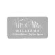 Fügen Sie Ihren Umschlägen Stil mit den Rücksendeadressen-Aufklebern Mr. und Mrs. in einem eleganten weißen Kalligraphieskript mit individuellem Text hinzu, den Sie mit dem verheirateten Nachnamen und der Rücksendeadresse der Neuvermählten personalisieren können. Die hellgraue Hintergrundfarbe kann geändert werden.
