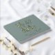 Elegantes Salbeigrün Hochzeitsgast-Buch mit "Mr. & Mrs." in einem großen Drehbuch, eine Darstellung von zwei Herzen zusammengeschlossen, und Ihre Vornamen und Hochzeitsdatum, alles in Ihrer Wahl von echter Gold, Silber oder Rose Goldfolie gerendert. Sie können Ihren Titel auf der Wirbelsäule personalisieren und Ihr Lieblings-Verlobung-Foto auf der Rückseite hinzufügen.