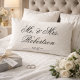 Dieses personalisierte Mr. and Mrs. Kissen ist die perfekte Ergänzung zu Ihrem neu verheirateten Bett oder Sofa. Es enthält eine elegante Schrift-Typografie mit schwarzem Text, der "Mr. & Mrs. Surname, Est. Jahr". Ein schöner Weg, Ihren Beziehungsstatus zu zeigen und ihn gleichzeitig elegant behalten! Macht ein großartiges Hochzeitsgeschenk oder ein Jubiläum.