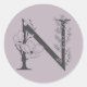 Elegant N Boho Floral Monogram Initial Lilac Gray Runder Aufkleber