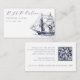 This wedding enclosure card features a vintage illustration of a ship, which you can replace with an image of your wedding venue. Elegant dark blue lettering lays out the date to respond by, QR code, and website URL.