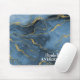 Ein hübsches viereckiges marineblau- und goldfarbenes Marmormor-Mauspad, personalisiert mit Ihrem Namen in einem Skript-Schriftart für den Vornamen und ein serifenloser Schriftart für den Nachnamen. Das elegante und schicke Marineblau mit goldgelbem Marmorboden. Eine elegante und stilvolle Ergänzung zu Ihrem Büro. Entworfen für Sie von BlackBerry Boulevard.