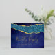 Elegant Navy Blue Agate Wedding RSVP Real Folie Einladungspostkarte