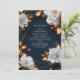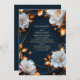 Diese luxuriöse Hochzeitsvorlage besticht durch einen herrlichen marineblau-farbenen Hintergrund, der mit seidenähnlichen weißen Blume und strahlenden goldenen Blätter an den Rändern geschmückt ist. Das Design bietet ein schillerndes und raffiniertes Ambiente mit einem geräumigen, puristischen Zentrum, das sich perfekt für personalisierte Details wie Namen, Termine und Veranstaltungsinformationen eignet. Ideal für moderne und romantische Hochzeiten, ist dieses elegante, hochauflösende und anpassbare Template, das eine atemberaubende und unvergessliche Einladung für Ihren besonderen Tag garantiert.