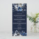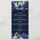 Elegant Navy Blue and Silver Floral Wedding Menu Menükarte