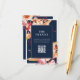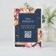 Moderne Hochzeit im Herbst Umzäunungskarten mit eleganten Boho fallen florale Akzente von Dahlia-Blume und Herbst botanischen Blätter, minimalistisch Typografie Design auf marineblau Hintergrund. Fügen Sie Ihren eigenen personalisierten QR-Code mit einer eigenen Hochzeitswebsite url hinzu.