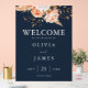 Elegant Navy Blue Boho Chic Floral Wedding Willkom Acrylschild
