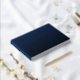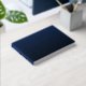 This elegant wedding guest book features a sophisticated navy blue cover with crisp white text, creating a striking contrast. The design showcases a centered rectangular frame with layered borders, highlighting the customizable initials and names in a mix of serif and cursive fonts that add a touch of refinement. Perfect for capturing well-wishes at a wedding, this guest book combines simplicity and style, making it an ideal keepsake for any special occasion. Its clean layout and formal aesthetic ensure it complements any wedding theme beautifully.