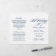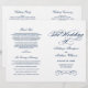 Elegante marineblaue und weiße Hochzeitsfeierlichkeiten beinhalten ein geblüht Monogramm mit Vintagen Schriftzeichen und Schriftzeichen-Gestaltungsakzenten. Personalisieren Sie den benutzerdefinierten Text für Ihr Brautparty, Zeremonie Informationen, und danken Sie Ihnen Nachricht. Hinweis: Diese Textgewichtspapierprogramme kommen flach an und müssen zum Zusammenbauen zusammengelegt werden.