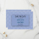 Diese verzierte Damast-Hochzeitseinladung eignet sich für eine moderne Hochzeit. Das stilvolle minimalistische Design verfügt über ein elegantes blaues Damaskaskript Verzierte Hochzeit Speichern Sie das Datum Einladung