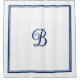 Klassischer und mit Monogramm Duschvorhang. Dieses Design enthält marineblau blauen doppelrangigen Skriptmonogrammbuchstaben. Personalisieren Sie den Monogramm-Brief des Skripts mit Ihrem Lieblingsbrief. Dieser blau-weiße Duschvorhang ist ein personalisiertes Geschenk.