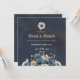 Set den Ton für Ihren großen Tag mit dieser eleganten blühenden Hochzeit in Marineblau, die Vintage Blüten und eine raffinierte Schriftzeichen-Typografie bietet. Dieses doppelseitige Design enthält Platz für alle Ihre Veranstaltungsdetails und einen optionalen QR-Code für moderne RSVPs. Ideal für romantische, formelle oder Herbsthochzeiten, verbindet er sich wunderbar mit goldenen, elfenbeinfarbenen oder staubigen Farbpaletten in der Rose. Personalisieren Sie einfach Ihren Veranstaltungsort, Namen und Datum.