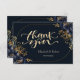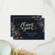 Elegante marineblaue Blumen mit goldenen Blätter auf marineblau-blauem Hintergrund. Schöne danke Ihnen Karte, die mit Ihrem Namen angepasst werden kann. Wählen Sie die Schaltfläche "Anpassen", um Stil, Farbe und Größe des Schriftartes zu ändern.
