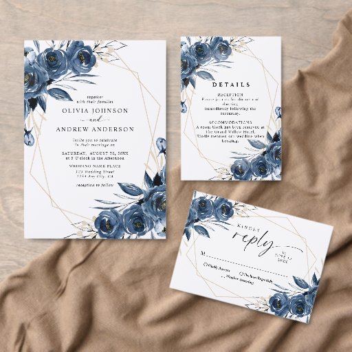 Elegant Navy Blue Geometric Floral WeddingDesignt von Halyna Tymoshenko