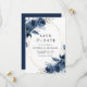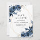 Elegant Navy Blue Flowers & QR Code Wedding Save The Date