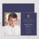 Elegant Navy Blue Foto Boy First Communation Einladung