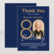Elegant Navy Blue Gold 80th Birthday Thank You Card. Elevate your milestone celebration with a Thank You card design that epitomizes understated elegance and chic minimalism. Our navy blue and gold theme exudes sophistication, creating a refined atmosphere for your special day. The custom photo feature adds a personalized touch, ensuring that each invitation is a unique and cherished memento. The simplicity of the design enhances its overall appeal, making a bold statement through clean lines and a tasteful blend of navy blue and gold accents. Join us for a celebration where every detail is thoughtfully curated to reflect the beauty found in simplicity, creating memories that are as timeless as the occasion itself.