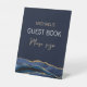 Elegant Navy Blue Gold Agate Men Gästebuch Pedes Sockelschild