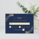 Elegant Navy Blue Gold Eucalyptus Foliage Wedding RSVP Karte