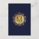 Elegante, moderne und schicke Imitate Gold und trendige marineblaue Blumenmuster, die auf den Hochzeitsinformationen basieren. Dieses klassische und raffinierte Design eignet sich perfekt für den anspruchsvollen, stilvollen und trendigen Absolventen. Personalisieren Sie Ihre eigene Nachricht auf der Vorderseite und ein individuelles Monogramm auf der Rückseite. Das gesamte Foto-Druckdesign.