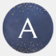 Elegant Navy Blue - Gold Foil Confetti Monogram Runder Aufkleber