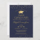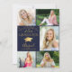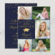 Elegant Navy Blue Gold Foto Collage Graduate Einladung