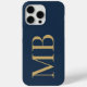 Elegant Navy Blue Gold Minimalistisch Initial Mono Case-Mate iPhone Hülle