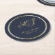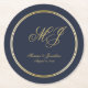 Elegant Navy Blue Gold Monogram Script Wedding Runder Pappuntersetzer