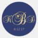 Elegant Navy Blue Gold Monogram Wedding Runder Aufkleber