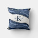 Elegantes Dekorationskissen mit marineblau-blauem Marmor/Ager mit glänzenden Silberstreifen. Personalisiert mit Ihrem Monogramm/Name und Initialname.