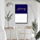 Elegant Navy Blue Minimalistisch| Gold Script Lett Kalender