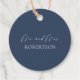 Feiern Sie Ihre Liebe mit diesem eleganten Navy Blue Mr. & Mrs. Tag. Mit einem raffinierten weißen Skript auf einem reichen marineblau-blauen Hintergrund fügt dieses Tag Ihrem Hochzeitsdekor ein zeitloses und raffiniertes Detail hinzu. Die Rückseite zeigt ein weiches blaues Blumenmuster, das eine romantische und polierte Oberfläche schafft. Ideal für Geschenktaschen, Gastgeschenke Hochzeiten, Orte oder die Aufbewahrung von Sake bei Hochzeiten, Brautpartys oder Jubiläen.