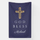 Individuelle Name Elegant Navy Blue Religious Cross Boy God Bless Banner.