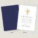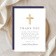 Elegant Navy Blue Religious Cross First Communion Dankeschön Karte.
