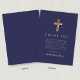 Elegant Navy Blue Religious Cross First Communion Dankeschön Karte.