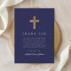 Elegant Navy Blue Religious Cross First Communion Dankeskarte
