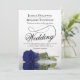 Diese wunderschöne Hochzeitseinladung zeigt ein wunderschönes Foto eines Single, eine lange stemmte marineblaue Rose, die auf der Seite liegt und in einem Wasserbecken mit Wellen und Wellen reflektiert. Das Design verfügt über ein extravagantes Kalligraphieskript mit einem langen, lockigen Schwanz, was es sowohl modern als auch klassisch macht. Elegante, raffinierte und schicke Art und Weise, Ihre Freunde und Familie zu einem besonderen Tag einzuladen. Die Rückseite der Karte hat einen QR-Code für Ihre Hochzeitswebsite und eine kurze Notiz, in der die Leute angewiesen werden, die Website für Details und UAWG zu besuchen.