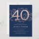 Elegant Navy Blue Rose Gold 40. Geburtstag Einladung