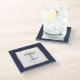 Elegant Navy Blue Rose Gold Palm Tree Hochzeit Glasuntersetzer