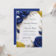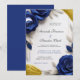 Elegant Navy Blue Roses & Gold Glitter Wedding Einladung