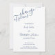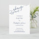 Eleganter und einfacher Wechsel der Pläne Karte, um die Gäste über Ihre Hochzeitsaufschiebung zu informieren. Das Design ist in marineblau und weiß mit handgeschriebener Schriftzypografie für die Namen der Braut und des Bräutigams und den Worten "Änderung der Pläne". Die Beispielformulierung lautet "Die Hochzeit von [Ihren Namen] wurde verschoben. Wir werden Ihnen gelassen, sobald wir ein neues Datum Set haben. Es war eine schwierige Entscheidung, und wir danken Ihnen für Ihre Liebe und Ihr Verständnis." Die Vorlage ist für das Set bereit, damit Sie Ihren Namen hinzufügen und so viel Text bearbeiten können, wie Sie möchten.