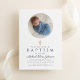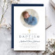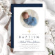 Personalisierte Elegant Navy Blue Script Boy Foto Taufe Einladung.