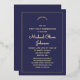 Elegante Navy Blue Script First Communion Gold Foil Einladung.