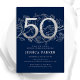 Elegant Navy Blue Silver 50. Geburtstag Einladung