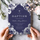 Elegant Navy Blue Silver Floral Boy Taufe Folieneinladung