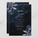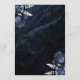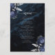 Dieses elegante Hochzeitsmenü bietet marineblaue Blumensträuße mit silberfarbenem Imitat in zwei Ecken, auf einem Hintergrund von marineblauer Aquarellage. Der anpassbare Text kombiniert silbergraue Serif- und Handschriftzeichen mit Schriftart. Die Rückseite ist mit einem blauen und silbernen Blumenmuster und einem passenden Age-Design ausgestattet.