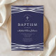 Personalisierte Elegant Navy Blue Silver Script Boy Taufen Foil Einladung.